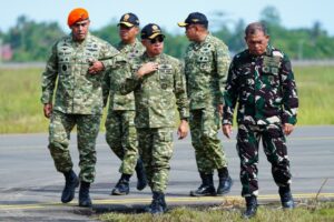 lensaviralNews.com-BANGKA,— TNI mengerahkan puluhan ribu prajurit dari tiga matra dalam Latihan TNI Terintegrasi Tahun 2025 sebagai demonstrasi kekuatan nasional sekaligus wujud komitmen melindungi aset strategis negara di Bangka Belitung dan Morowali. Menteri Pertahanan RI Sjafrie Sjamsoeddin didampingi Panglima TNI Jenderal TNI Agus Subiyanto, serta sejumlah pejabat negara menyaksikan langsung pelaksanaan latihan dari Titik Tinjau Desa Mabat, Bangka, Rabu (19/11/2025).