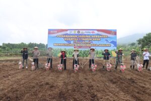 Kegiatan penanaman jagung tersebut turut dihadiri oleh unsur Forum Koordinasi Pimpinan Daerah (Forkopimda) Kabupaten Garut, para Pejabat Utama Polres Garut, kelompok tani, komunitas pemuda, serta tokoh masyarakat setempat.